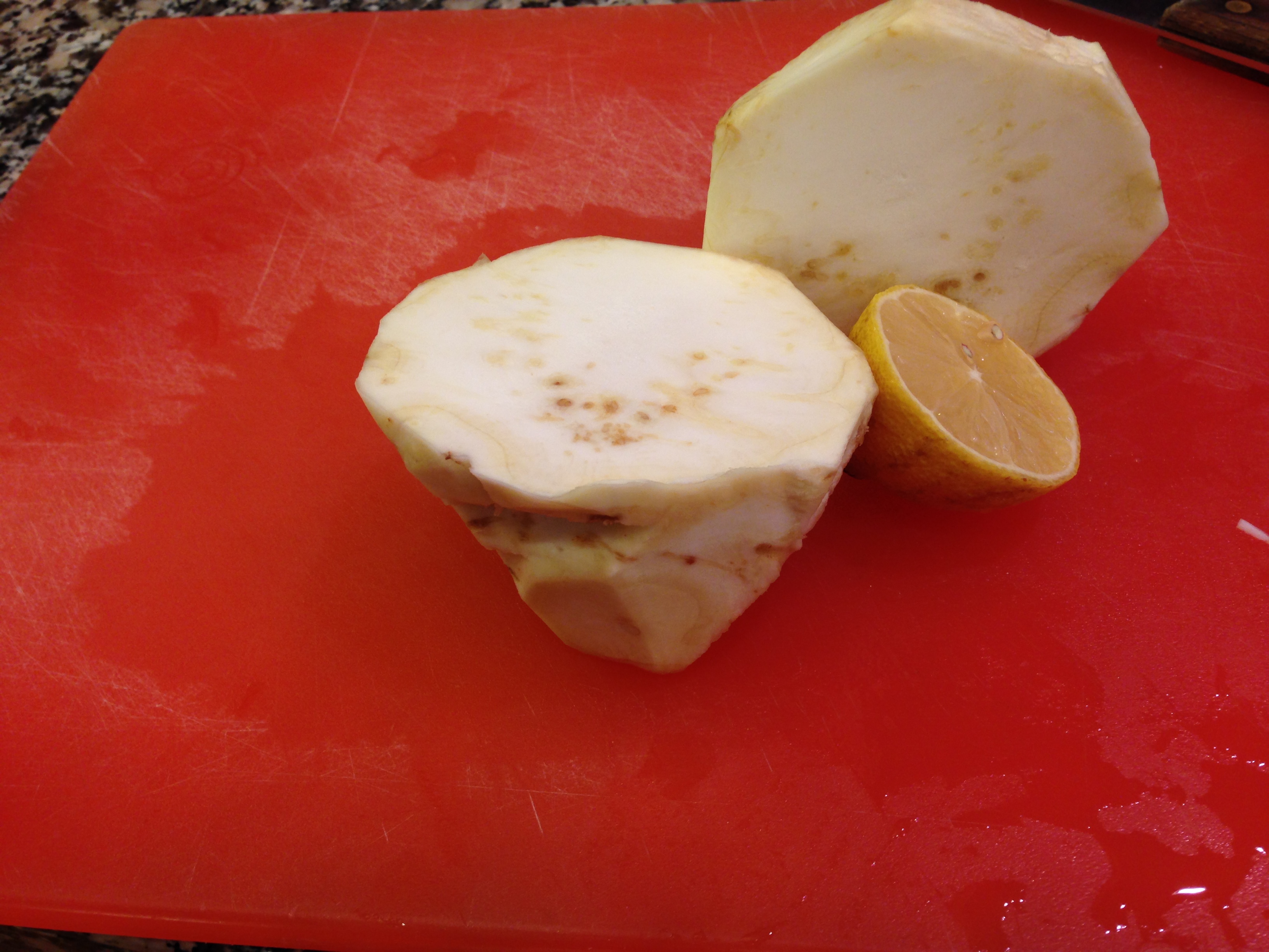 1 large or 2 small celery roots (2 pounds) (I used 2 small)